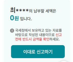 모든 금액 입력을 마친 후 [세액계산해보기]를 눌러 최종 납부 세액이 '0'인지 확인합니다.