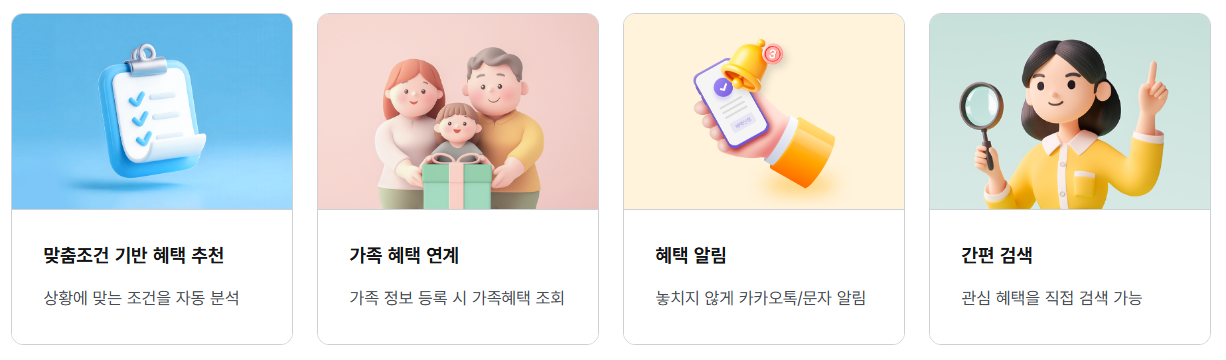 지원 요건이 변경되거나 새로운 제도가 도입될 경우에도 별도 검색 없이 최신 기준이 반영되어 안내되므로, 복잡한 행정 정보를 지속적으로 관리하지 않아도 되는 점이 특징입니다.