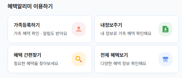 가족 정보를 함께 등록하면 자녀, 부모, 배우자에게 적용되는 혜택도 동시에 확인할 수 있어 가구 전체의 복지 정보를 통합 관리할 수 있습니다. 생애주기별 정책을 체계적으로 파악하는 데에도 도움이 됩니다.