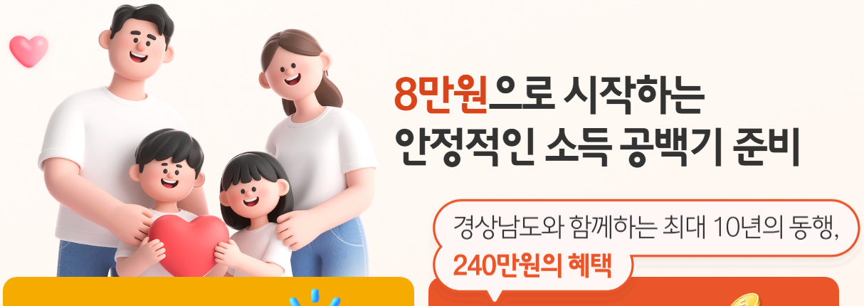 가입자가 매월 8만 원을 납입하면 경상남도가 월 2만 원을 추가로 적립해 주어, 총 10만 원이 매달 쌓이게 됩니다.