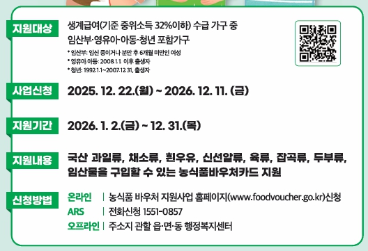 신청 기간은 2025년 12월 22일부터 2026년 12월 11일까지이며, 방문·전화·온라인 신청이 가능합니다.