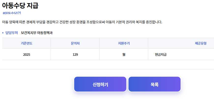 아동수당은 보편 적용 원칙을 유지하기 때문에 소득·재산 기준 없이 모든 가정이 동일하게 지원 대상입니다.