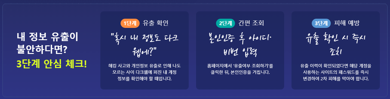 이 서비스의 핵심 목적은 계정정보의 실제 유출 여부를 조기에 확인해 추가 침해 피해를 방지하는 데 있다.