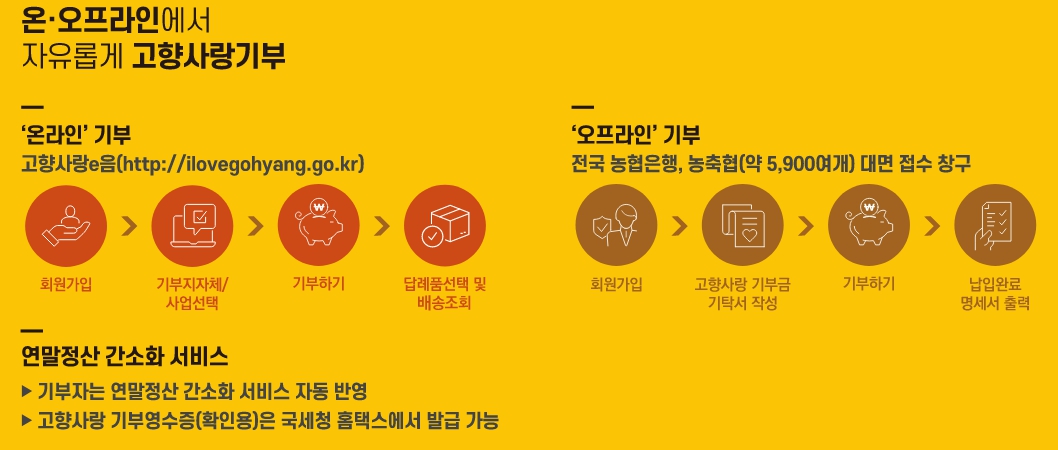 - 기부 대상: 주소지를 제외한 전국 모든 지방자치단체