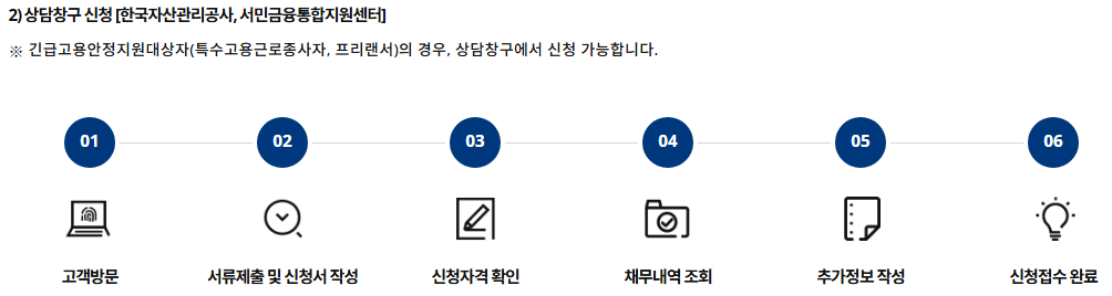 신청 방법: 온라인 신청은 새출발기금 공식 홈페이지(https://www.newstartfund.or.kr)에서 가능하며, 오프라인 신청은 캠코 지역본부 또는 서민금융통합지원센터에서 진행할 수 있습니다. 온라인 신청 시 신청 자격 확인과 채무 내역 조회, 추가 정보 입력 후 제출하면 됩니다.
