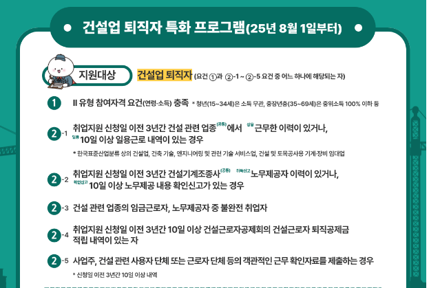 2025년에는 지원 인원과 예산이 확대되고 건설업 퇴직자 특화 프로그램이 신설되면서, 온라인 시스템과 접근성이 개선되었습니다. 지금이 제도 참여와 취업 준비를 동시에 시작할 최적의 시기입니다. 국민취업지원제도를 단순 지원금이 아닌 취업 파트너로 활용해 안정적인 직업과 미래 경력 설계를 시작하시기 바랍니다.
