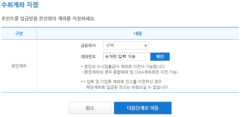 - 본인 명의 계좌 준비 및 입력 확인