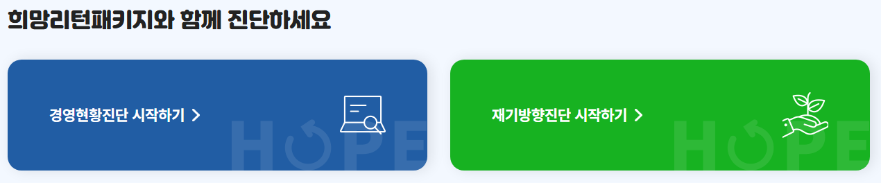 1. 희망리턴패키지 홈페이지(www.sbiz.or.kr) 접속 후 온라인 신청