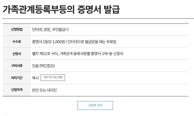 가족관계증명서 인터넷 발급 절차