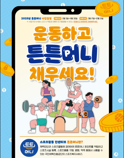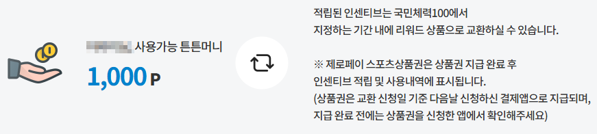 게다가, 국민체력100의 체력활동에 참여하면 ‘튼튼머니’라는 포인트도 적립할 수 있습니다. 이 포인트는 상품권이나 건강용품으로 교환이 가능해 운동도 하고, 보상도 받는 1석 2조의 혜택을 누릴 수 있습니다.