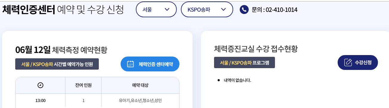 - 체력측정 신청: 원하는 날짜와 시간대에 온라인 예약 가능