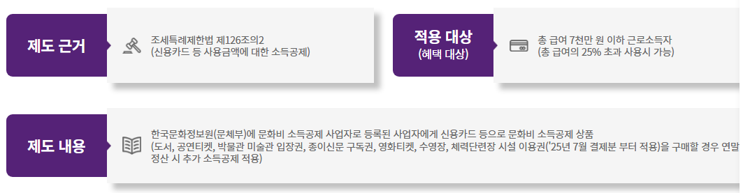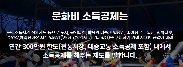 ‘문화비 소득공제’는 근로소득자가 연간 일정 금액 이상의 신용카드 등 사용금액이 있는 경우, 그 중 도서·공연·영화 등 문화생활 관련 지출에 대해 추가로 소득공제를 받을 수 있는 제도입니다. 이는 2018년 도입된 제도로, 원래는 책이나 공연, 박물관·미술관 입장권, 영화 관람료 등 문화예술 활동에 한정되어 있었습니다.
