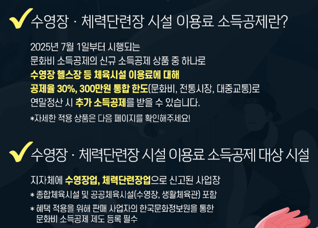 하지만 2025년 7월부터는 체육 분야까지 소득공제 항목에 포함되면서 정책의 범위가 크게 넓어졌습니다.