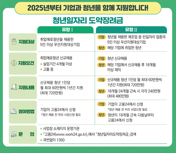 | 항목 | 유형Ⅰ (취업애로청년) | 유형Ⅱ (빈일자리 업종) |