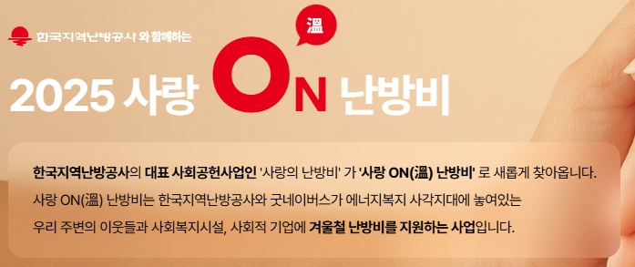 매서운 추위가 찾아오면 난방비가 평소보다 빠르게 늘어나기 마련입니다. 특히 경제적 여건이 넉넉하지 않은 가정이나 복지시설에서는 난방비 부담이 더욱 크게 다가오는데요. 이러한 어려움을 줄이기 위해 한국지역난방공사와 굿네이버스가 함께 마련한 ‘사랑ON 난방비 지원사업’이 올해도 진행됩니다. 아래에서 개인·기관별 신청 방법과 준비 서류를 상세하게 정리해드렸습니다.