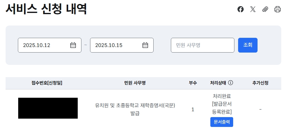 해당 서류는 정부24 홈페이지에서 간단한 인증 절차 후 즉시 발급받을 수 있습니다. 다음 단계로 진행하면 됩니다.