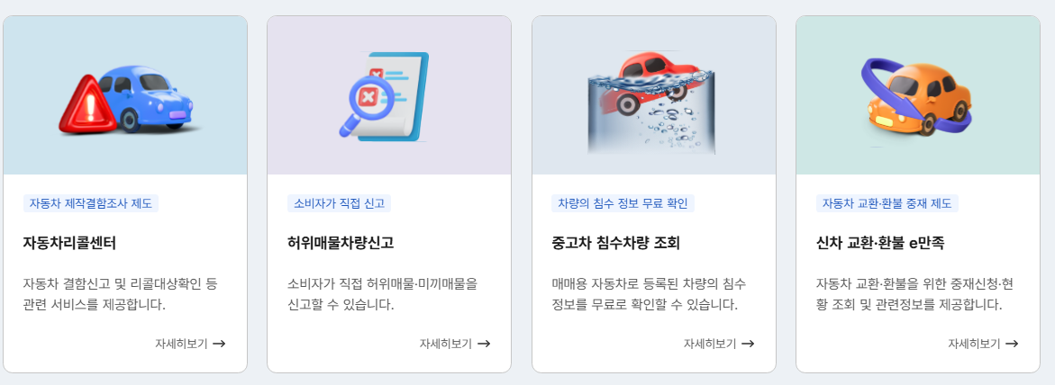 공공기관이 관리하는 데이터로 운영되기 때문에 정확하고 검증된 정보를 제공한다는 장점이 있습니다. 자동차 관련 정보를 여러 사이트에서 찾아보던 과정을 대신해 믿을 수 있는 단일 플랫폼으로 안내해줍니다.