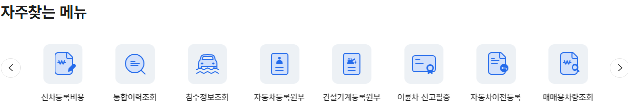 - 중고차 거래 전 통합이력조회를 먼저 진행하면 안전한 거래에 도움이 됩니다.