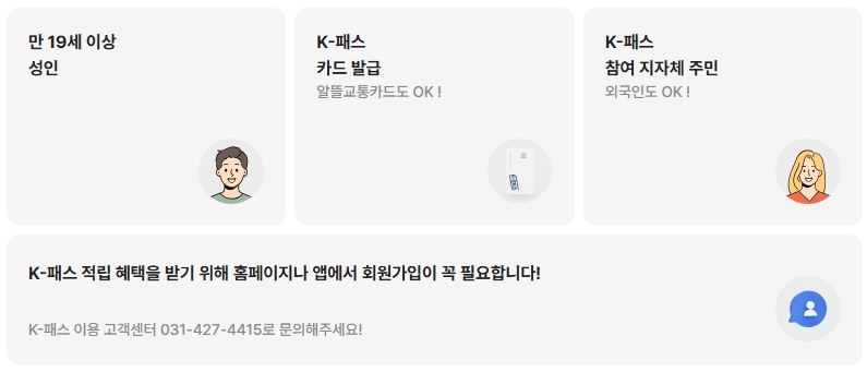 거주 지역이 K패스 운영 지역에 포함되어 있다면 만 19세 이상이라면 누구나 가입 가능합니다. 단, 지역별로 적용 범위나 운영 방식에 차이가 있을 수 있어 가입 전에 참여 지역 여부를 반드시 확인하는 것이 좋습니다.