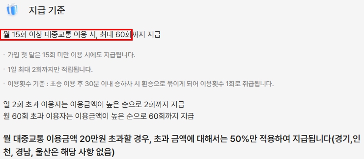일반 가입자는 이용 금액의 약 20%를 환급받습니다. 출퇴근 등 꾸준한 이동이 있는 직장인에게 적합합니다.