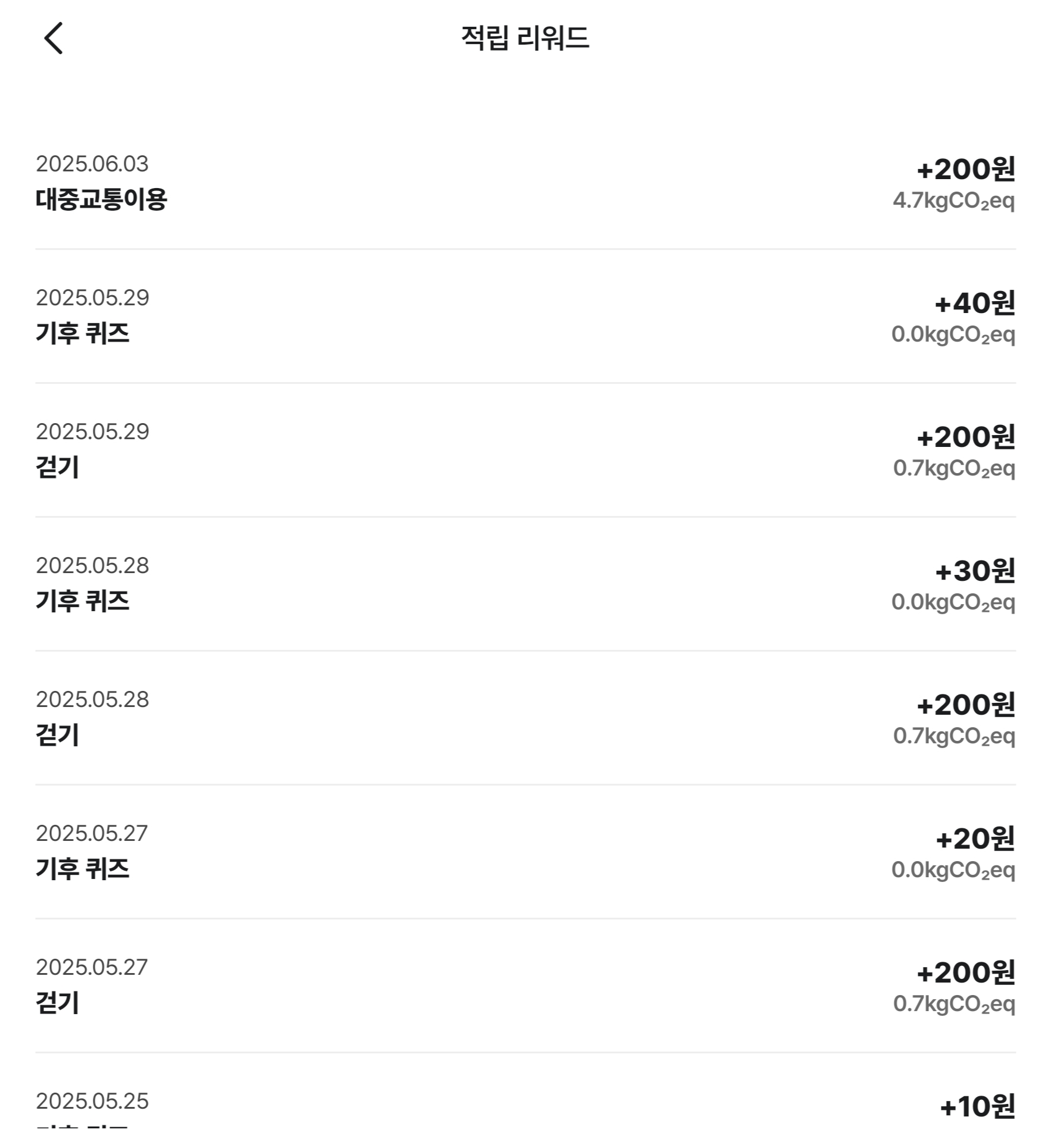 | 기후 퀴즈 | 기후 퀴즈 정답 시 지급 | 10~100원 + 보너스 200원(10회) |