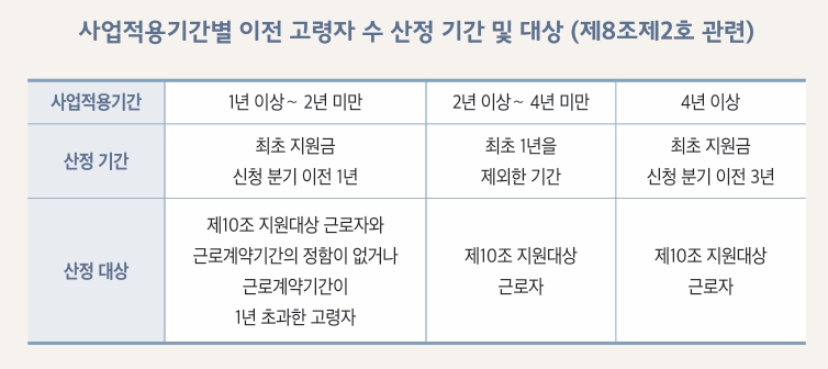 • 만 60세 이상 근로자를 신규 채용 또는 계속 고용할 것