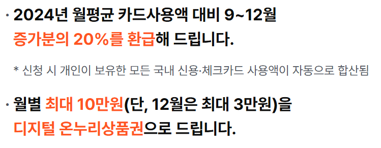 환급 방식은 자동 계산 구조로 복잡한 절차 없이 카드 사용 증가분이 확인되면 다음 달 15일 지급됩니다.