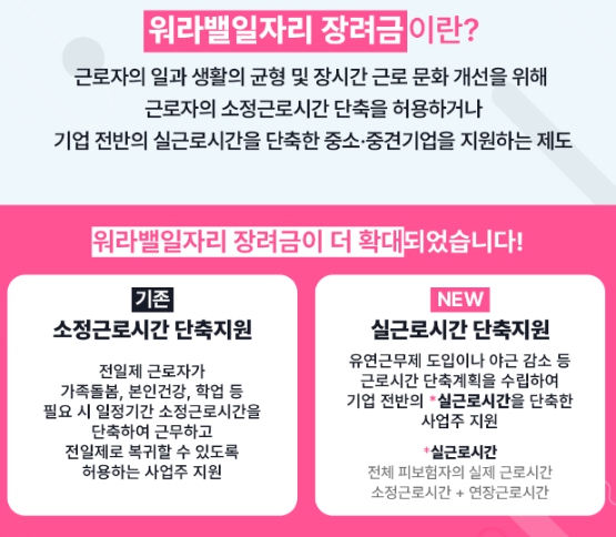 이러한 흐름 속에서 도입된 워라밸일자리 장려금은 근로시간 조정이나 유연한 근무 체계를 구축하기 위해 노력하는 사업장을 돕기 위한 제도로 운영되고 있습니다.