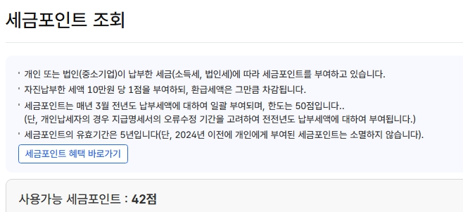 세금포인트는 국세청이 운영하는 납세 인센티브 제도입니다.