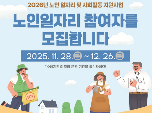 2026년부터는 경로당 배식 지원, 지역사회 통합돌봄 지원, 노노케어 등 사회적 약자를 지원하는 업무가 ‘우선지정일자리’로 운영됩니다.