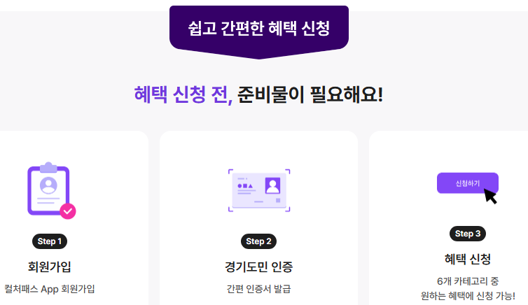 ‘컬처패스’ 앱을 내려받아 회원가입을 한 뒤 경기도민 인증을 완료하면 쿠폰 신청이 가능합니다.