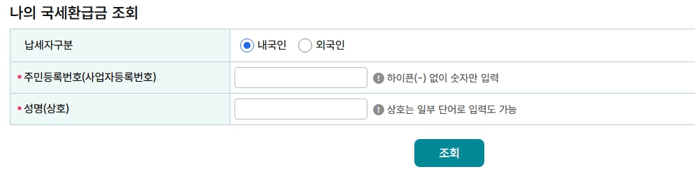 국세 환급금은 환급 결정일을 기준으로 최근 5년 이내의 내역만 조회 및 수령이 가능합니다.