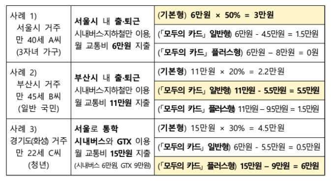 모두의 카드는 이용 행태에 맞춰 일반형과 플러스형으로 구분됩니다.